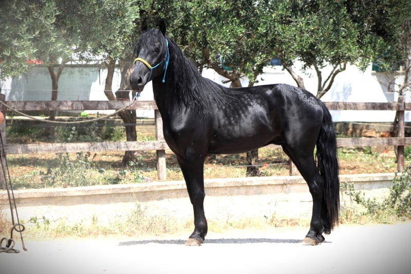 Santiago Santiago is a charming young man who is currently being lightly backed and prepared for a future life as a reliable leisure horse. He is on the lighter side, currently stands around 158 cm tall, and will reach an estimated final height of about 160 cm. He is not easily startled; while he was being lunged, other loose horses came into the riding arena to stalk him, and even the household donkey lay down right in his path. None of this impressed him or made him "spooky." Santiago was purchased some time ago by the trainer who is backing him, and he was castrated a few weeks ago. He is now ready for his new life with a family of his own, but he can stay there for further training. We look forward to inquiries about this handsome horse. More pictures and videos are available upon request. Do you want to meet Santiago in person? He is currently still in his home in Apulia. He also comes with X-rays, which can be viewed with serious interest. We will also plan everything else for you - clinical pre-purchase examination, handling of the purchase contract, transport to your home stable, etc. - On behalf of the Italian Murgese Association A.N.A.M.F.