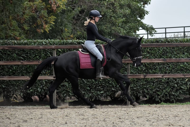 Unico! Il cavallo Murgese proviene dall'Italia ed è noto per il suo carattere equilibrato, la buona maneggevolezza e l'intelligenza superiore. Questo splendido stallone di 4 anni misura circa 1,62 m (potrebbe ancora crescere). In compagnia è molto tranquillo e rilassato, si lascia avvicinare ovunque e apprezza tutte le attenzioni che riceve. Sotto la sella è molto facile da cavalcare, risponde bene alle leggeri aiuti. Può muoversi in modo estremamente elastico e fluido. Ha andature ampie e un potente posteriore. È anche dotato di un eccellente galoppo. Ha una bocca morbida e facile da mettere a contatto, si lascia lavorare con piacere. È avanti, ma ben controllato e può essere raccolto e riaccompagnato facilmente. Poiché ha un carattere abbastanza deciso e risponde leggermente agli aiuti, non lo consiglierei a un cavaliere alle prime armi o insicuro. Tuttavia, viene regolarmente montato da ragazze con esperienza sufficiente in maneggio ed è estremamente obbediente. Abbiamo già provato a saltare con lui e si è comportato molto bene, trovando il salto molto divertente! Durante le sessioni, lo abbiamo portato con la bandiera, senza cap, passando accanto a trattori grandi, senza alcun problema. Lo ritengo molto adatto a chi desidera praticare sport, sia jumping che dressage, ma anche a chi cerca un cavallo affidabile, con un carattere equilibrato, per sport o uso ricreativo. Recentemente ha ottenuto la certificazione RX. È stabulato nella regione di Utrecht. Per ulteriori informazioni, può chiamare il numero 06-19830888. Per appuntamenti e video, inviare un messaggio WhatsApp al 06-12876667. Non rispondiamo alle email. Abbiamo anche altri cavalli Murgese in vendita.