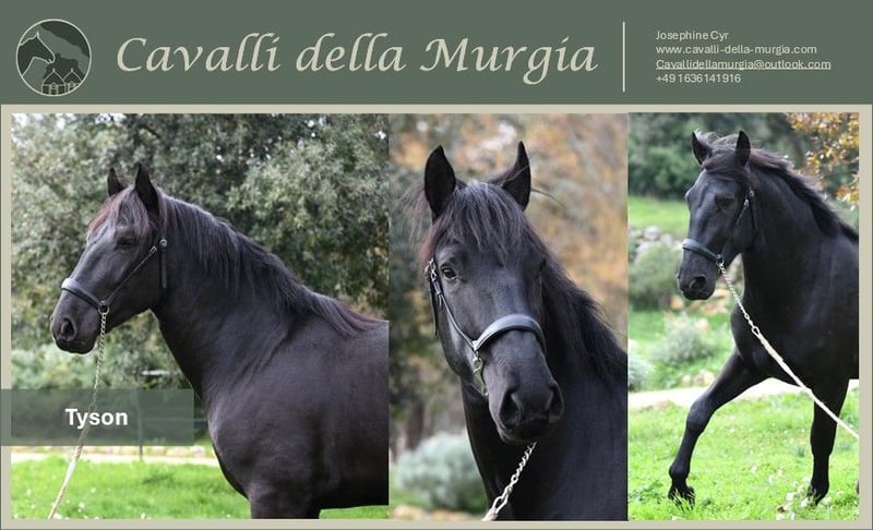 Tyson, geboren 2023, überzeugt mit seiner außergewöhnlichen Ausgeglichenheit. Er ist bereits vertraut mit Sattel, Trense und leichtem Reitergewicht. Durch spielerische Arbeit kennt er nicht nur die Grundlagen, sondern beherrscht auch coole Tricks wie das Kompliment und Steigen. Selbst das Fahren an der Hand gehört schon zu seinem Repertoire – ein talentierter Allrounder in der Jungpferdeausbildung! Tyson hat Ihr Interesse geweckt und Sie möchten ihn gerne persönlich kennenlernen? Aktuell steht Tyson noch in seiner Heimat, Apulien. Wir helfen Ihnen sehr gerne, einen Besuch dort zu planen. Tyson wird durch Cavalli della Murgia vermittelt. Röntgenbilder sowie weitere Bilder und Videos stellen wir gerne auf Anfrage zur Verfügung. Die komplette Kaufabwicklung inklusive AKU und Transport nach Deutschland wird ebenfalls von uns organsiert. Haben Sie noch Fragen? Schreiben Sie uns gerne eine Mail - cavallidellamurgia@outlook.com. Wir freuen uns auf Ihre Nachricht!