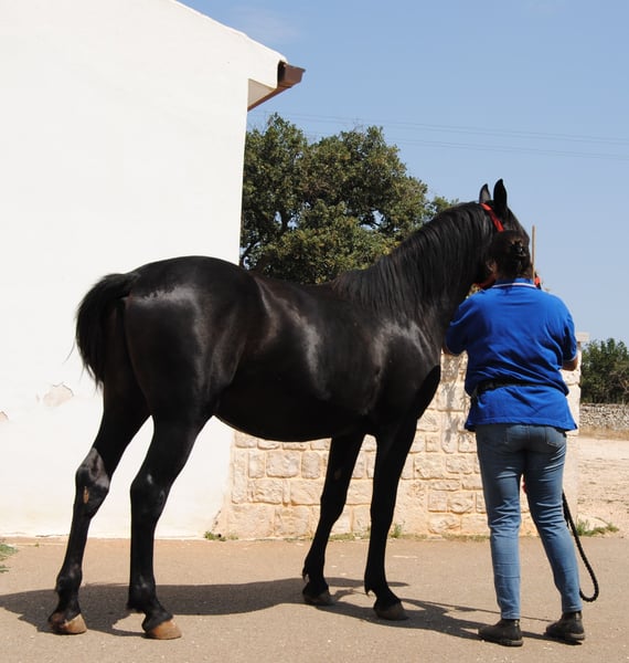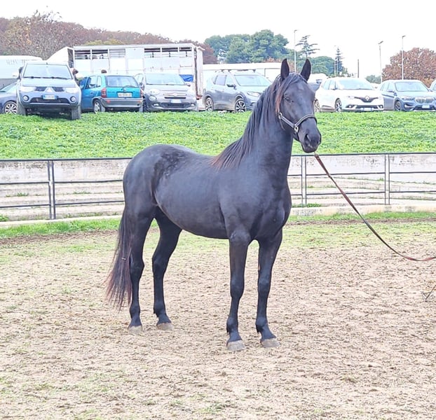 Tindaro was born on April 7, 2023, from Gemma, one of our most important broodmares with outstanding genetics. Gemma descends directly in female line from one of the first mares registered in the breed almost 100 years ago. His sire, Libero di Zappone, owned by the State, is an impressive horse with a baroque conformation, a gentle and friendly temperament, and he passes on smooth, pleasant gaits to his offspring. Tindaro was born into our herd, which comprises about 25 to 30 horses of varying ages, from a few months to over twenty years old. The herd includes mares of all ages, foals of both sexes, and a gelding. Like all our males, he remained in the herd until about 16 to 18 months old. At that point, he was separated and has been living in a large paddock consisting of woodland and pasture, together with other young males and our gelding, who plays an educational role with the young stallions. Currently, he is in the company of our gelding. He is familiar with electric fencing and the stable, which he spends a short time in each day to gradually and pleasantly get used to it. We prefer our horses to always live in large spaces, but we also understand how important it is for them to be adaptable and familiar with the stable, so they feel comfortable if, for any reason, they need to be housed there. Tindaro is not intrusive; he is curious about people but respects personal space, both his own and others’. We have known him since birth and have taught him, through only positive associations, that humans are a point of reference for him and that nothing bad or dangerous happens when people are around. He accepts grooming without issues, knows how to stand tied, and is currently working on picking up his feet, approaching the shower, and injections. We are also working with him on a confident understanding of the trailer, so he can travel calmly to his future owner and for all subsequent trips. We are teaching him, calmly and serenely, to move off at the three gaits, so he can eventually be lunged. Tindaro has smooth, expressive gaits with a natural extension. He is currently 157 cm tall but is expected to surpass 160 cm, as he has just turned two and will continue growing until around five years of age. A Future Together We are looking for a forever home for him, someone who sees the horse as a living being with its own personality and who wants to build a solid, lasting relationship. Someone who understands the fundamental needs of a horse, such as 24-hour access to hay and the opportunity to live in paddocks and in company. We work with positive reinforcement, but also use minimal, non-invasive pressure at the right timing. He has been dewormed and is undergoing his vaccination cycle. Currently, he is entire, but there is the possibility of gelding him here in Puglia, under our supervision at our farm. We are also happy to offer: - Additional videos upon request - Answers and information tailored to your needs - Organizing a veterinary purchase exam suited to your requirements - Hosting you at our farm to meet Tindaro in person - Arranging transport and the necessary documentation Visit our website: https://masseriacapoiazzo.it/ and our social media: Instagram: https://urly.it/3ajhc Facebook: https://urly.it/3ajhd Feel free to contact us for any questions, either here on ehorses or via WhatsApp at +39 346 523 2016. Paola and Giovanni
