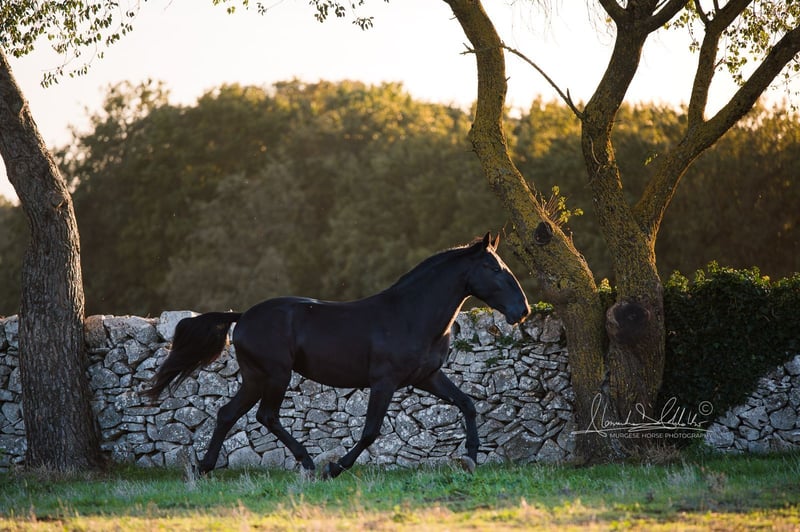 La castrazione è già inclusa nel prezzo di acquisto! Salvador P.M. è uno di quei cavalli che abbiamo avuto il privilegio di seguire fin dalla nascita. Cresciuto nei grandi pascoli dell'allevatore, è arrivato all'inizio dell'anno nelle scuderie per prepararlo alla sua vita futura. E, come è consuetudine per questo allevamento, ciò avviene in tranquillità e al ritmo del cavallo. L'ABC dei puledri è acquisito e le ulteriori sessioni di addestramento vengono svolte in modo adeguato all'età. Salvador collabora bene e si mostra curioso e aperto. Salvador è molto tipico per la sua razza, con un tocco di eleganza e una bella testa non troppo esagerata. È super affettuoso e amichevole, ma porta con sé anche un po' di spirito, il che lo rende il compagno ideale per una famiglia impegnata o un cavaliere di tempo libero. Possiamo immaginarlo bene anche nell'equitazione barocca - è generalmente dotato di buone movenze. Attualmente misura 154 cm - la sua altezza finale è stimata intorno ai 160 +/- cm. Salvador è ancora intero, ma su richiesta può essere castrato (già incluso nel prezzo). Siamo felici di ricevere richieste - ulteriori informazioni e video sono naturalmente disponibili. Vuoi conoscere Salvador di persona? Allora accompagnaci in un viaggio nella sua terra d'origine, la Puglia. Porta con sé anche le lastre radiografiche, che sono consultabili in caso di interesse serio. Inoltre, pianifichiamo tutto il resto per te - visita clinica pre-acquisto, gestione del contratto di acquisto, trasporto nel tuo maneggio, ecc. - per conto dell'associazione italiana dei Murgesi A.N.A.M.F.