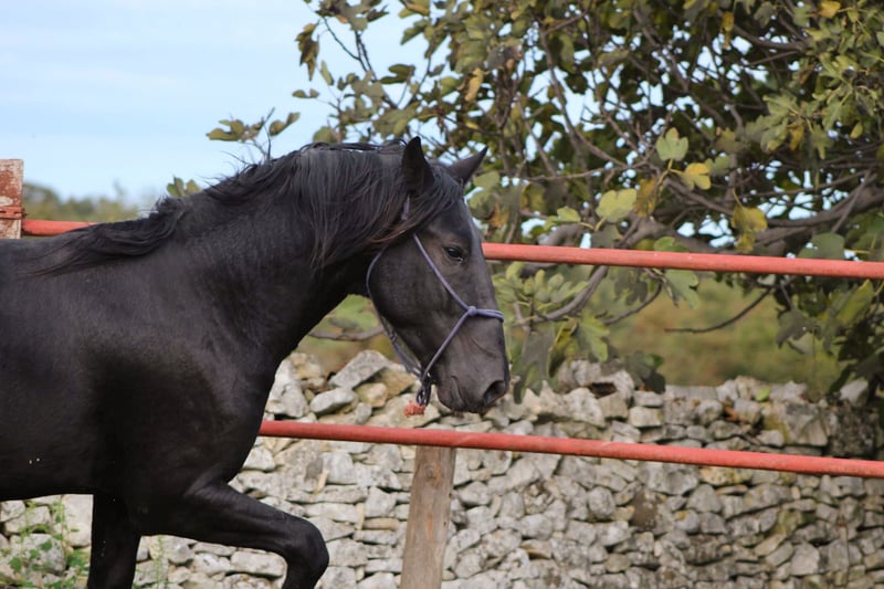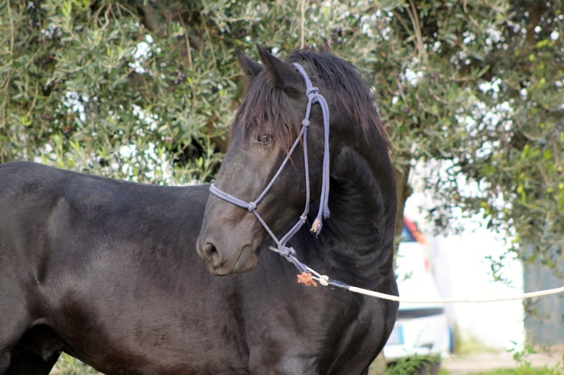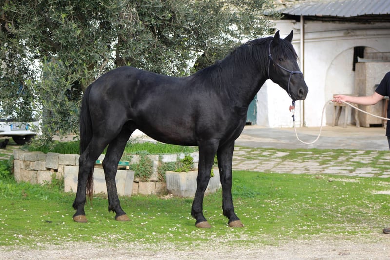 T.F. Proust Tequila Open-minded, very gentle in handling, and playfully cheeky – these words aptly describe Tequila. In the round pen, Tequila is very attentive to his handler and reacts to the slightest changes in body language. He is very affectionate towards people, always up for a little joke ;-). Tequila grew up with some buddies in the herd of the breeder from whom we are now allowed to offer him. He is familiar with life on a masseria, which means: dogs, guard geese, cows, tractors, and more dogs. He has professionally learned the basics of young horse training and is now looking forward to the next steps in his education with you. Currently, Tequila is not castrated but can be upon request and will be done by the breeder (included in the price). Born in 2023, his estimated final height is around 16.1 hh. If you would like to know more about Tequila – we look forward to your message. X-ray images are available and can be viewed upon serious interest. We will also handle everything else for you – clinical pre-purchase examination, contract processing, transport to your home stable, and more. Cavallo Murgese.de – on behalf of and in cooperation with the Italian Murgese Association A.N.A.M.F.