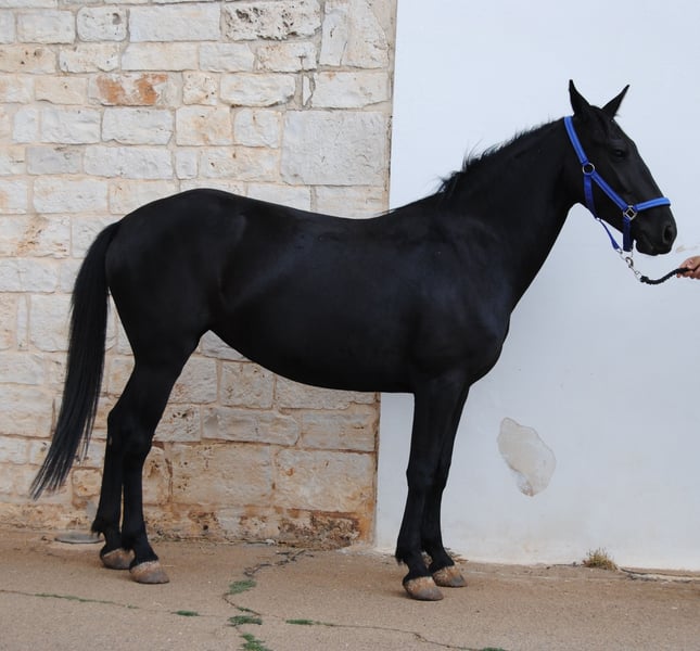 Sibilla was born on April 17, 2022, in the vast pastures of our Murgia, immersed in the Apulian territory that has cradled the breeding of horses for centuries, serving great emperors like Frederick II, and where, for almost 100 years, the Murgese horse has been officially bred. Our farm is historic, consisting of a herd of mares whose mothers, grandmothers, great-grandmothers, and so on we have known in their lineage. Today, just like a century ago, our Murgese mares are born and spend their lives free in the pastures and woods of the Murgia. Since then, what has changed and grown is primarily our approach to their selection and domestication, which has become increasingly professional and passionate. Like all our horses, Sibilla was born in a herd of almost 30 individuals, ranging from 0 months to over 20 years old. She has spent her entire life in the herd, which has helped her become socially competent and very balanced. At the same time, daily contact with humans and a science-based approach using positive reinforcement have made her confident and calm around people. For about two months now, she has been living in a smaller pasture with other mares, and we are taking care of her preparation so that she can find a family for the rest of her life. Long lining, positive box training, standing tied, grooming, bathing, learning to pick up her feet, trailer loading, and all those other skills useful for everyday life are part of the educational steps we are addressing with her. Sibilla is an elegant mare, with a dark bay coat that makes her charming and a worthy representative of her breed. She has a thick mane and tail that will surely be a pride for her future companion with the right care. She is a peaceful mare, respectful of personal space, curious about humans but never intrusive. Like her mother, she learns extremely quickly. She is compact and has elegant and secure gaits, making her ideal as a companion for rides, but also for flatwork and, why not, for working under saddle. Sibilla resembles Nerone, one of the founding stallions of the Murgese breed, with her modest height (about 150 cm) and her elegance. For her, as for all our horses, we are looking for a forever person, someone who sees the horse as a living being with its own personality, who wants to build a solid and lasting relationship over time. A person who can understand the fundamental needs of a horse, hay available 24/7, and the possibility of living a life in a paddock and in company. We are always available and open to: - sending you more videos - providing you with all the answers and information you need - organizing a tailored veterinary purchase visit to suit your needs - hosting you here at the farm to meet Sibilla in person - arranging transportation and related documentation. You can visit our website: https://masseriacapoiazzo.it/ and our social media: Instagram: https://urly.it/3ajhc Facebook: https://urly.it/3ajhd Feel free to contact us for any information, here on ehorses, or with a WhatsApp message at +393465232016. Paola and Giovanni