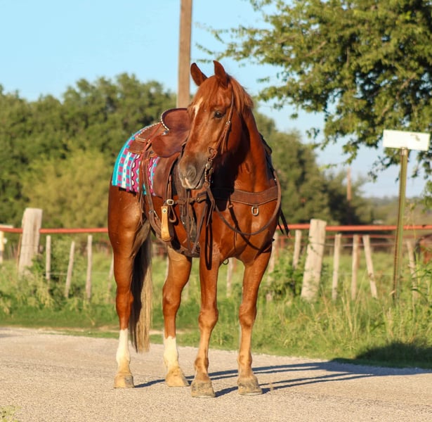 ONLINE AUCTION Place your bids at www.PlatinumEquineAuction.com Starting Bid $3500 Auction ends October 20th, 2024 Need a new saddle? Check out White Rock Saddles on our website or Facebook! Let me introduce to you Manny the mustang ! Here’s your chance at a piece of American history ! Hes the best color in the world sorrel and just happens to be a great American mustang to boot ! Manny is 9 years old and standing 15.1 hds tall . He is from the Salt Wells HMA in Wyoming.Manny is the barn favorite and the kids never forget there cookies when coming to see him . He’s a people’s horse he loves attention and is always the first one to put his head over the gate when you come into the barn . He is truly one in a MILLION. Manny was a hit at the Fort Worth stockyards on a busy Friday evening. He wasn’t bothered by the crowds of people petting him and taking pictures with him , heavy traffic and lots of loud music . He will go down the trail with no issues at all. Like most mustangs he’s sure footed and tough he can go up any mountain and take care of you . He loves to go swimming in the river and playing in the water . He will cross logs , bridges , and goes through thick brush . He is brave and confident down the trails . Not only is Manny an exceptional trail horse he rides fantastic in the arena he breaks at the poll , and has a great stop on him . He is laid back he will walk , trot and lope beautiful circles. Manny would also excel in the endurance and eventing world . We have led our neighbor kids around on him who are 3 and 4 years old he takes care of them and is always careful around the kids . He is absolutely what everyone needs when looking for that new horse that the WHOLE family can enjoy. Manny is absolutely 100% beginner safe. We trust Manny with everyone from the smallest kids and beginner riders . He’s a dream from the ground to his back always taking care of everyone . He’s used to wildlife, cattle and dogs . Manny is one you don’t want to miss out on! Contact us to come try him, or we can set up a FaceTime also. If you need help with transport don’t hesitate to ask we have a list of reputable haulers that can get him safely to your doorstep world wide. Located in Stephenville, TX. Contact M $ Performance Horses Michelle 661-817-9120. ONLINE AUCTION Place your bids at www.PlatinumEquineAuction.com Starting Bid $3500 Auction ends October 20th, 2024 Need a new saddle? Check out White Rock Saddles on our website or Facebook!