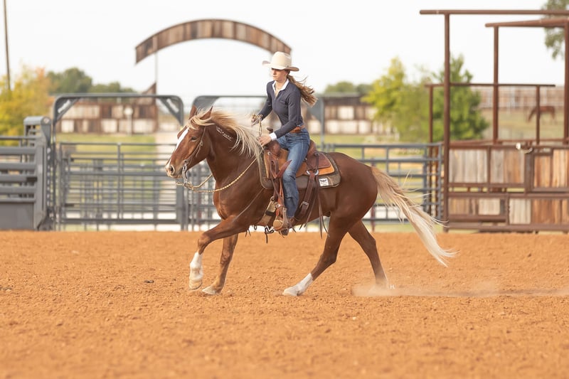 ♦️ 𝐭𝐡𝐞 𝐀𝐌𝐄𝐑𝐈𝐂𝐀𝐍 𝓕𝓪𝓵𝓵 𝓒𝓵𝓪𝓼𝓼𝓲𝓬 ♦️ Happening now thru MONDAY | OCTOBER 20th - Available EXCLUSIVELY on HorseBid's website! For more details and to register visit: www.Horsebid.com CONSIGNOR CONTACT: H Spur Performance & Versatility Horses 817-366-6123 LOCATION: Weatherford, TX BREED: Mustang REGISTERED: Yes REGISTERED NAME: Chester COLOR: Chestnut HEIGHT: 14.3 AGE: 6 GENDER: Gelding We’ve heard all of the stigmas surrounding them : “They can’t be soft and responsive.” “They’re not safe around kids.” “They’ll never be as good as domestic horses.”… but Chester is here to prove you wrong, and I promise he will. Chester is a 6yr old, BLM branded mustang that was gathered from the Sand Wash Basin in Colorado in 2021. From there Chester has blossomed into not only being the kindest soul, but an absolute favorite in the saddle. From ranch rodeos to ranch versatility shows to being a whole family type of horse, he’s gone above and beyond to prove his worth in every aspect. If you’re wanting a responsive and easy ride in the arena, you’ll be pleased when you climb into the saddle that’s on Chester’s back. He’s always in tune with his rider, picking up on not only cues from your legs but your seat as well, making everything feel effortless and easy. He’ll trot and lope the prettiest circles on as much rein as you’d like to give him; never going any faster than asked. Chester side passes easily both directions, will turn on his haunches or on the forehand, can do a flying lead change both directions, and will come to an easy stop or let the dirt fly with his impressive slide. If you feel like having some fun, you can peel his bridle off with the confidence of knowing he's still listening to you every step of the way. Chester has also done a multitude of things in the arena other than just being enjoyed. From ranch rodeos to ranch versatility shows, he’s competed in both with an undeniable presence. Although he’s just started his ranch versatility show career, he’s impressed judges with his natural ability and cadence scoring +1 on several scorecards for a multitude of maneuvers in several different classes. Not only does Chester have the ability to be a show horse, he shows real promise to take his rider to the pay window in the roping pen as he’s been both headed and heeled off of too. Outside of the arena, Chester has been used extensively to gather, sort, brand, and doctor in all different types of terrains. He’s as cowy as any NCHA competitor and will never quit you; catch him in the dim morning light and put him back at dusk and he will be happy to do it all again the next day. Not only has he been used for work outside, but Chester has also been ridden outside for leisure and is happy to travel down the trail alone or in a group. He handles vehicle and pedestrian traffic with ease as well as any obstacles you may come upon like downed trees, creeks, or street crossings. He’s patient, will ground tie if you need to get off for any reason, and stands quietly for you to get on without taking a step until you’re ready. Not only is Chester an absolute pleasure in the saddle but he’s just as enjoyable, if not more, to be around on the ground. If there is one thing Chester does not lack, that’s personality. His sweet nature makes all things a breeze from saddling to grooming and he enjoys just hanging out with you like another member of the family. He loads and unloads like any gentleman should and is quiet in the trailer when hauling. We’ve also ridden Chester after he’s had time off and he has never offered to do wrong in any way. Chester has good feet, no vices, and has never required any sort of maintenance or special care. He’s been an absolute joy to have in our program, and we know he’ll be a barn favorite for you too. We invite you to come meet Chester at our home in Weatherford, TX and can help set up hauling to wherever it is you call home. PPEs welcomed as always. More pictures and videos can be found by visiting Chester’s page on our website, www.hspurhorses.com/chester. For any questions and to talk about if Chester is right for you, don’t hesitate to contact Sarah at 817-366-6123.