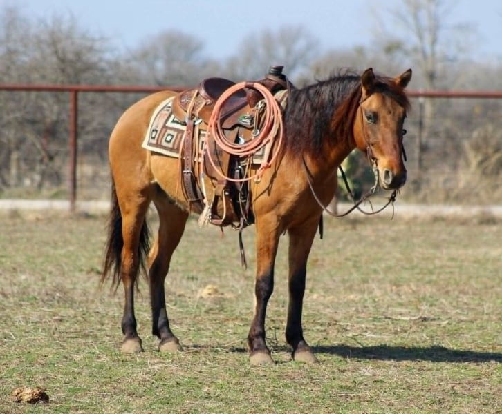 Meet Benji, a charming 2019 dun BLM branded Mustang gelding standing a perfect 14 hands tall. He was gathered from the Eagle HMA in Nevada and is the epitome of cowboy cool! Benji has an impressive resume, having competed in the mustang makeover with his previous owner, who did a fantastic job training him. He’s participated in extreme trail challenges, showcasing his ability to navigate all sorts of obstacles with ease. He has been day worked on doing all the ranch chores including roping sick cattle outside, Benji is always up for the task. He’s been used to gather and load trucks at the sale barn, proving he’s as versatile as they come! With an extremely nice handle, Benji keeps his head low whether we’re in the arena, on the trails, or at the ranch. He has a quick, smooth walk that can cover ground when you need it. He’s been ridden to town countless times and doesn’t flinch at semi-trucks zooming by or heavy traffic. Benji is a joy to ride on trails, where his sure-footedness and keen awareness keep everyone safe. He’s seen miles and miles of diverse trails and thrives in rough country—it just comes naturally to him. Not only is he well-broke for trail rides, but he’s also ready to shine at ranch horse shows, especially in the mustang classes. In the arena, he walks, trots, and lopes circles with ease, demonstrating great transitions and a willingness to lope right out of your hand. Benji is super sweet and absolutely loves being loved on! He’s great with tarps and flags, and he’s even participated in local town parades. Recently, we’ve started pen roping calves on him, and he’s shown all the buttons and ability to become a standout breakaway horse. With a natural instinct for cattle, he truly enjoys working and roping. Don’t miss the chance to watch his video and see just how amazing and versatile Benji is. He’s ready to be your new equine partner! Contact us to come try him,