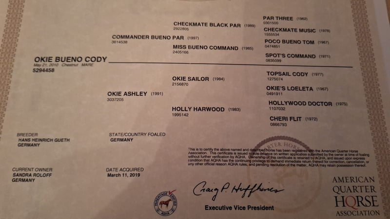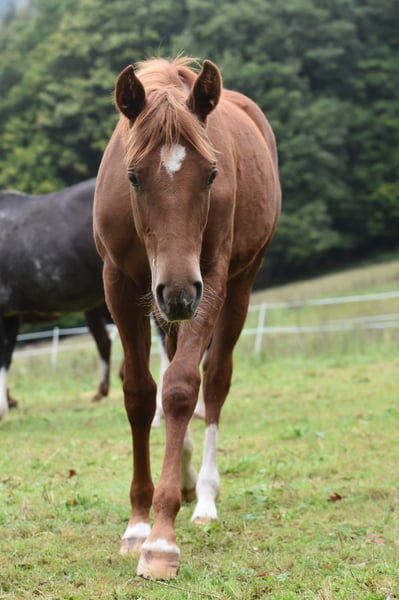 Ihre Mutter eine Quarter Stute des alten Schlages (Foundation Linie mit Papier) und ihr Vater, ein Suffield Mustang mit ausgewöhnlichem Fundament (Artos-Ari) und wirklich schönen Gängen machen dieses kompakte Mädchen wirklich zu etwas Besonderem. Sie wird in allen Disziplinen des Reitsports, ob Trail, Western, Dressur, Freizeit einsetzbar sein. Sie wächst in einem natürlichen Herdenverband auf großen, hügeligen Koppeln mit mehren Stuten und ihren Fohlen und ihrem Vater auf. Geboren 03/25, Größe etwa 1,55 cm Farbe chestnut mit 2 Söckchen vorne, 2 Stiefeln hinten. Die Zeichnung ist absolut gleichmäßig. Aktuell stehen wir im Winterquartier (Offenstall im Herdenverband). Sie lässt sich gut verladen und ist auch schon 2x Hänger gefahren. Gerne kann sie bei Kaufinteresse auch noch bei uns stehen bleiben. Wer ernsthaft Interesse hat,kann sich gerne ein Bewerbungsvideo schicken lassen. Der Trab ist ein Traum Bei Interesse schicke ich gerne weitere Bilder/Videos, eine Besichtigung, auch von Vollgeschwister und den Eltern ist jederzeit möglich. Inzwischen ist sie gechipt und geimpft und war sehr artig dabei. Kontakt auch gerne per WhatsApp 0179 5221143