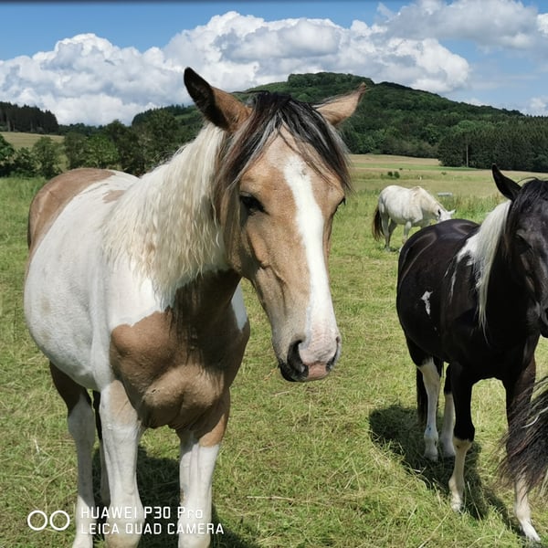 MUSTANG PAINT MIX SKY es ist eine Stute aus unsere Mustang Stute Silver von dem Mustang MAKE OVER !!! SIE IST super hübsch und ihr könnt alle, Videos von der Mutter sehen !!! SEHR großrahmig und stabil ,so wird CA 160 cm , UND IST MEGA GROß und Kräftig !!!! Dabei ist sie auch noch super cool ,,,,,wie ihre Mutter , Text folgt noch später, für alles Fragen gern Anrufen , 0160 8038660