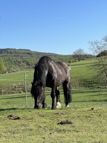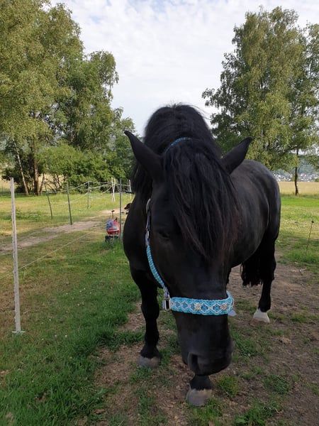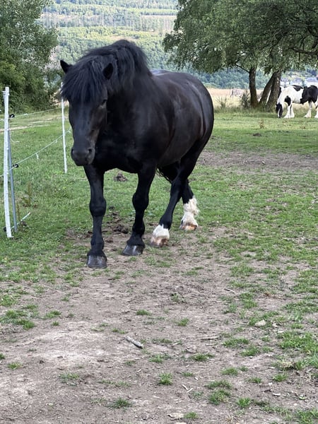 With a heavy heart, I am seeking a new, suitable home for my 11-year-old Noriker gelding, as I have to part with him due to health reasons. This decision is incredibly difficult for me, so I am only looking for the very best hands for him. His height is 165 cm (16.1 hh), and he weighs approximately 850 kg. He has been ridden for leisure (English saddle with fleece pad, mostly bitless, but a bit is no problem) and has been driven both single and pair. He is willing to work, honest, and reliable. He is familiar with indoor riding arenas and ground work, but his heart truly belongs to the outdoors. Calm rides – whether short or longer – are exactly his thing. He does not need daily work; he simply enjoys his life as a horse. In the past, he had some health issues, but these are no longer relevant. He now appears unremarkable and fully capable of handling leisure activities without any problems. He is not a beginner’s horse, but he is certainly not a problem horse either. Like any characterful horse, he has his quirks – but those who take the time to understand him will gain a loyal partner with personality. He is not suited for competitive sport, but perfect for relaxed, enjoyable hours in nature. He has always been kept in a herd environment. Currently, he lives with a Tinker gelding buddy and two donkeys. He will probably miss them at first. In winter, he is kept in an open stable with turnout, weather permitting, with daily grazing. In summer, he enjoys 24/7 pasture with shelter. He is definitely not a stable horse. An extensive pasture system with plenty of movement, outdoors day and night, would be ideal. He prefers to be in a small, harmonious herd with several companions. He will only be placed in good, experienced hands. Priority goes to the well-being of the horse over price. If you can offer a characterful Noriker a species-appropriate home and are looking for a reliable leisure partner, I would be very happy to hear from you. Feel free to come and meet him – perhaps your new riding partner is waiting here for you.