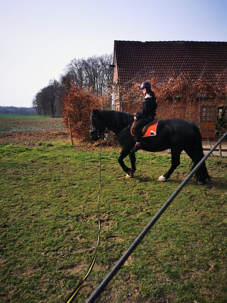 In vendita un castrone di 5 anni di razza Noriker, colore morello, con un'altezza al garrese di circa 168 cm. Pedigree: padre *Eisenhut Nero*. Il castrone è stato iniziato alla monta e attualmente viene lavorato in modo ricreativo. Conosce cani, altri animali, bambini e il traffico stradale, mostrando in generale calma e coraggio. Dal punto di vista caratteriale, possiede un temperamento rilassato, ma ha bisogno di una persona di riferimento chiara e decisa, con buona capacità di leadership. In assenza di una guida ferma, può diventare testardo e un po’ riluttante al lavoro, quindi è importante un’occupazione regolare e sensata. Ha bisogno di essere mentalmente stimolato. È assolutamente compatibile con altri cavalli e conosce sia il box che il paddock aperto. Nel quotidiano, si mostra affidabile in gestione: * facile da ferrare * facile da caricare Dal punto di vista sanitario, non sono presenti problemi noti. Grazie alla sua predisposizione, è particolarmente interessante per carrozzieri o cavalieri esperti di lavoro con giovani cavalli. Può essere fornito anche l’attrezzatura. Attualmente il castrone è disponibile a Beckum. **Località: Beckum**