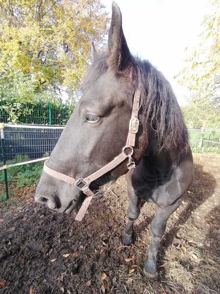 Our big boy is looking for a new home. Unfortunately, he and we are not the right match. He is a loyal soul, but he needs to be challenged and preferably integrated into a herd. We are unable to provide either here. He is backed and lunged, but in the past six months, we haven't been able to further develop either aspect, as we are beginners ourselves. He has expressive gaits and is an impressive presence.