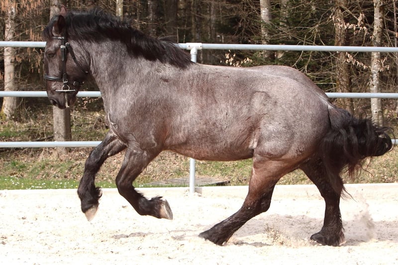 Zum Verkauf steht ein beeindruckender Noriker-Wallach, geboren im Jahr 2021. Mit seinem charaktervollen Roan-Blue-Fell besticht er durch sein auffälliges Erscheinungsbild und seine freundliche Ausstrahlung. Das Stockmaß von 175 cm macht ihn zu einem stattlichen Partner, der sowohl optisch als auch vom Charakter her überzeugt. Der junge Noriker ist bestens für die Freizeitgestaltung geeignet. Er ist angeritten und zeigt sich im Umgang zuverlässig und interessiert. Er kennt Bodenarbeit, Longe, Reiten im Gelände und auf dem Platz. Dem Alter entsprechend sollte er weiter gefördert werden. Der Wallach wird regelmässig beschlagen, geimpft und entwurmt. Sein freundliches Wesen zeichnen ihn aus, sodass er sich bestens für ausgedehnte Ausritte, Spaziergänge und auch leichte Dressurlektionen eignet. Bei Interesse freuen wir uns auf Ihre Kontaktaufnahme, um weitere Details zu besprechen und einen Termin zur Besichtigung zu vereinbaren.