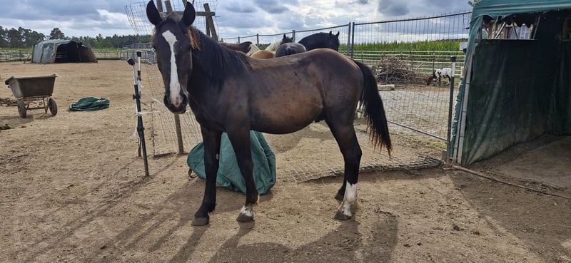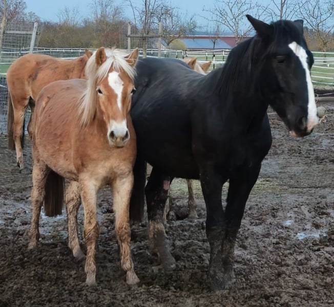 Mailo ist ein Norikerhengst, er ist am 28.03.2024 Geboren. Sein Vater ist Müller Diamant, er hat volle Papiere. Aktuell hat Mailo ein Stockmaß von 1,53m. Er ist regelmäßig Geimpf und Entwurmt worden. Er stand bei einem Händler in Österreich, seine Zukunft war dort ungewiss. Bei mir ist er seit November 2024. Seit dem hat er sich sehr gut entwickelt. Das Fohlen ABC kann er. Man kann ihn überall anfassen und Putzen. Beim Hufe geben tut er sich noch schwer, mit dem Gleichgewicht. Mailo ist ein liebevoller Büffel, der auch mal seine Grenzen testet. Er wächst im Offenstall mit gleichaltrigen und Erwachsenen Pferden auf. Im neuen Zuhause sollten Pferde zum Spielen sein, das tut er sehr gerne. Ich verkaufe ihn aus Zeitgründen. Damals ging es um sein Leben, deshalb habe ich ihn genommen. Mailo hat eine OP Versicherung, diese kann gerne mit übernommen werden. Er wird nur an einen 5* zuhause verkauft. Händler haben keine Chance