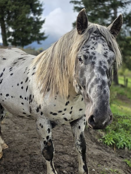 Jury Elmar, descendant of Jumbo Elmar, is a beautifully colored young Noriker stallion, 2.5 years old. He is free from PSSM, vaccinated, and regularly dewormed. He is well-behaved with the farrier and during loading. He is kept with peers of the same age, being very tolerant, friendly, and affectionate. He also remains calm and confident when left alone. Jury has not yet been backed or broken in. I am looking for a home where he can continue to be supported and developed. Jury will undoubtedly become a wonderful leisure horse for riding or driving. I am happy to provide more information about Jury upon personal request. Please only serious inquiries, thank you.