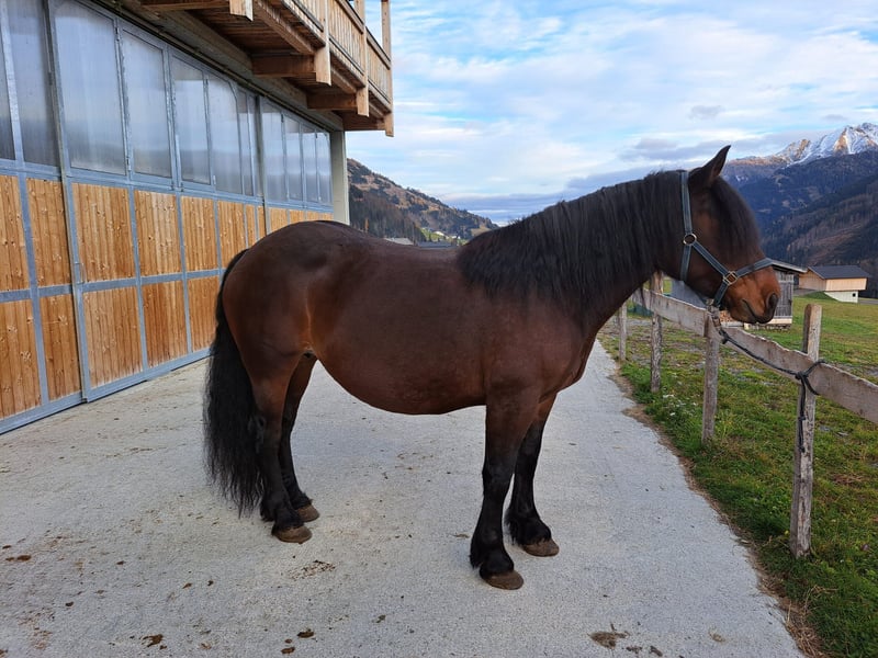 Pregnant, brown, beautiful Noriker mare with 2A papers, 6 years old, stick size approx. 1.62m, riding & draught safe, loading. In a good place. For more information please contact us!