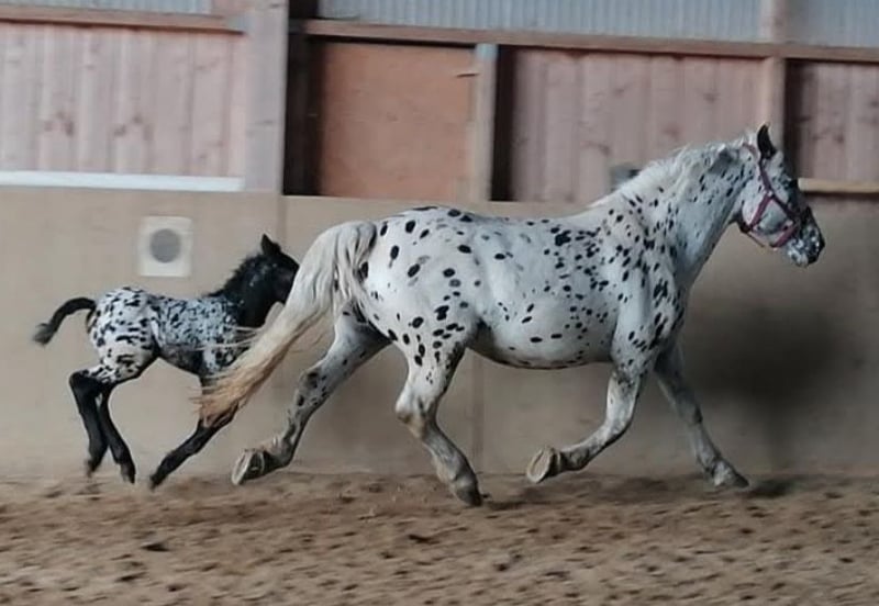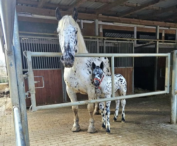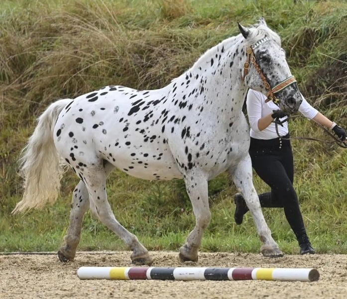 Lichtspiel was born on March 29, 2015. She stands approximately 1.60 meters tall but appears more substantial. Lichtspiel has been driven single and is very well ridden. She is capable of all lateral movements and transitions, including rein-back, and is rideable and sensitive to the aids. She has successfully completed both her driving and riding performance tests with very good results. At the riding horse inspection, she was the winner with an overall score of 8.19. She placed third at the Austrian Riding Horse Championship in 2019. Lichtspiel is officially recognized as a mare with a breeding value of 7.86 / 2a and is classified as a premium mare in the studbook. She was qualified for the national show but was unable to participate due to health reasons. Lichtspiel is a Verband Premium mare and PSSM1 free. Her sire is the stallion Famos Elmar XIV, a well-known stallion by the legendary Franz Elmar. On her dam’s side, she is out of Freund Elmar, and her dam is the proven state premium mare Laara, who has distinguished herself at regional and national shows. The breeding stallion Fabelhafte Elmar is a full brother to Lichtspiel. She has been in my possession for 5.5 years and is being sold due to herd reduction. Lichtspiel is exemplary well-behaved both in the herd and with people. In the field, she is fearless, traffic-safe, and diligent. She is ambitious and eager to be further trained. So far, she has had four foals, all perfectly marked black-spotted foals, with very smooth births. Lichtspiel has been inseminated four times with us.