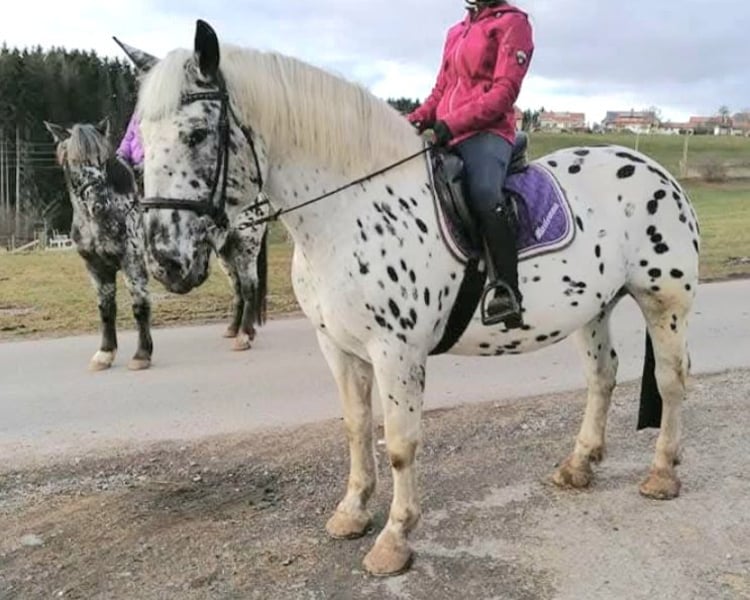 Lichtspiel was am 29.03.2015 geboren und misst ca. 1,60 m, wirkt jedoch kräftiger. Sie ist einspännig gefahren und sehr gut geritten. Sie beherrscht alle Seiten und Übergänge sowie Rückwärtsrichten, ist rittig und fein an den Hilfen. Lichtspiel hat die Leistungsprüfung im Fahren und im Reiten mit sehr gut bestanden. Bei der Reitpferdeprüfung wurde sie Siegerin mit einer Gesamtnote von 8,19. Beim Reitpferde-Champion 2019 in Österreich belegte sie den 3. Platz. Mit der Note von 7,86 / 2a wurde sie als Hengstmutter sehr gut ins Stutbuch aufgenommen. Sie war für die Bundesschau qualifiziert, konnte jedoch aus gesundheitlichen Gründen nicht antreten. Lichtspiel ist eine Verbandspremienstute und PSSM1-frei. Ihr Vater ist der Hengst Famos Elmar XIV, ein Stempelhengst von Franz Elmar. Auf der Mutterseite stammt sie von Freund Elmar ab; die Mutter ist die bewährte Staatsprämienstute Laara, die auf Landes- und Bundesschauen Aufmerksamkeit erregte. Der Deckhengst Fabelhafte Elmar ist der Vollbruder von Lichtspiel. Sie ist seit 5,5 Jahren in meinem Besitz und wird wegen Bestandsverkleinerung verkauft. Lichtspiel ist sowohl im Herdenverband als auch im Umgang mit Menschen vorbildlich brav. Im Gelände ist sie unerschrocken, verkehrssicher und fleißig. Lichtspiel ist ehrgeizig und möchte gefördert werden. Bisher hat sie vier Fohlen, allesamt perfekt gezeichnete Schwarzfleckige, die Geburten verliefen sehr unproblematisch. Lichtspiel wurde bei uns vier Mal beschlagen.