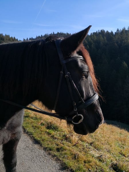 Larissa ist 11 Jahre alt und 159 cm. Die Norikerstute kann auch von Kindern oder Anfängern geführt und geritten werden. Auch bestens geeignet für schwere Reiter. Laute Maschinen, Baustellen, Kühe, Traktoren, schreiende Kinder oder bellende Hunde, das lässt sie alles völlig kalt. Sie liebt alle Arbeiten mit ihrem Kumt. Dabei zeigt sie sich stets engagiert, nervenstark und verkehrssicher. Bei ihrem Erstbesitzer = Züchter wurde sie 2-Spännig gefahren, dabei kann sie links oder rechts eingespannt werden. Ausserdem war sie für Touristen und einige Male als Rückepferd im Einsatz und ist auch an Festumzügen mitgelaufen. Auch geritten wurde sie. Seit sie bei uns ist (seit 2 Jahren), wird sie vor allem im Gelände geritten. Als Kutscheranfänger haben wir bis anhin ein halbes Duzend Kutschfahrten mit ihr unternommen und sehr genossen. Dabei fiel uns sofort auf, wie routiniert sie ist und daher ein guter Lehrmeister für uns war. Die Umstellung auf 1-spännig funktionierte auf Anhieb problemlos. Unser Kaltblut zieht ohne Scheuklappen! Auch als Rückepferd haben wir sie getestet. Dabei hat sie schwere Stämme gezogen, was ihr sichtlich Spass bereitete. Im Schnee zieht sie unsere Kinder zuverlässig auf ihren Schlitten. Sie läuft seit 2 Jahren barhuf mit Hufschuhen vorne. Der Hufpfleger ist alle 6 Wochen vor Ort, dabei ist sie brav. Sie wird regelmässig entwurmt, Zähne werden jährlich gemacht. Sie war stets gesund und ist Ekzem- und Allergiefrei. AKU ohne Befunde ist vorhanden. Sie ist mit 7,59 Punkten im Stutbuch aufgenommen, sie hatte aber noch nie ein Fohlen. Ihre Mutter ist mit 7,91 Punkten im Stutbuch aufgenommen. V: Sternfürst Vulkan MV: Eigen Nero Platz vor Preis! Kutsche, Geschirr, Zaumzeug, Sattel und Hufschuhe können bei Bedarf dazu erworben werden.