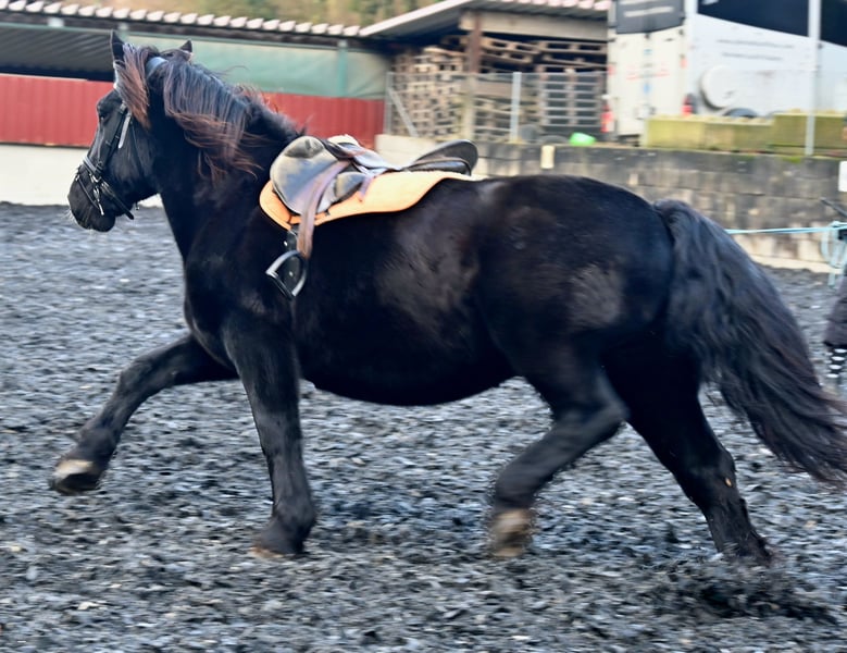 Miriam is a 156cm tall, friendly and well-behaved Noriker black mare. Her temperament is balanced and she is free of naughtiness. She was born on 04.03.2013 and has been ridden and driven in two harnesses. Miriam is registered in the studbook as a stallion dam with 7.64 points and has had several foals. Meli, her foal from 2023, can be viewed at our yard. Miriam knows the stalls as well as the open stable. She is used to children, dogs, cats and farm machinery. She is well-behaved at the farrier, she is barehoof and she gets into the horse trailer without hesitation. Miriam is regularly wormed and tested PSSM1 free. Her sire is the 1b stallion Schneider Vulkan. MV: Pongau Elmar XIV
