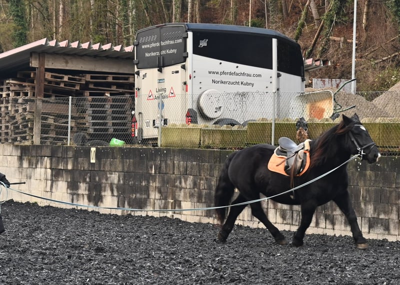 Miriam es una yegua árabe de raza Noriker, de color alazana y de 1,56 m de altura. Es una yegua amable y tranquila, con un temperamento equilibrado y sin vicios. Nació el 4 de marzo de 2013 y ha sido montada y conducida en doble carreta. Miriam está registrada como yegua madre en el libro de cría con una puntuación de 7,64 puntos y ha tenido varias crías. Su potranca de 2023, Meli, puede ser vista en nuestra finca. Miriam está acostumbrada a los box, así como a la modalidad de establo abierto. Está familiarizada con niños, perros, gatos y maquinaria agrícola. Es tranquila con el herrador, está sin herrar y sube sin dudar al remolque para caballos. Se desparasita regularmente y ha sido sometida a pruebas para PSSM1, con resultado negativo. Su padre es el semental de raza 1b, Schneider Vulkan, y su madre es Pongau Elmar XIV. Con gusto le ofrecemos la posibilidad de visitar a los caballos de lunes a sábado. Es posible realizar una prueba de monta en el paddock o en el campo, así como sesiones de longe y trabajo en suelo para conocer mejor a su caballo ideal. La prueba cuesta 40 € por sesión y se reembolsará en caso de compra. Las clases de equitación reservadas no son reembolsables.