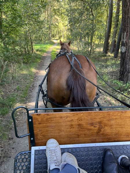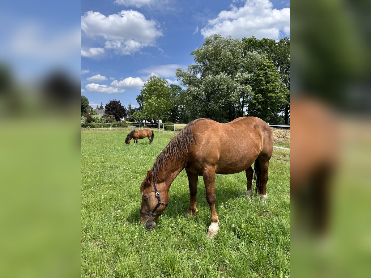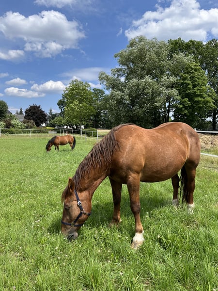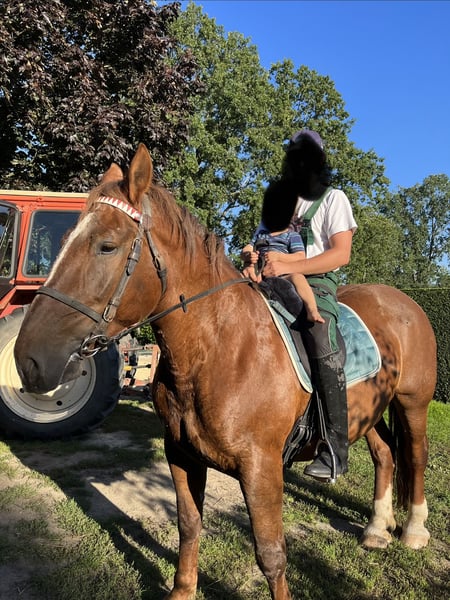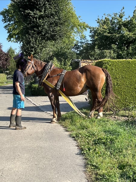 Fuchsbraune Noriker-Stute, 18 Jahre – erfahrenes Familien-, Kutsch & Freizeitpferd sucht liebevollen Platz. Schweren Herzens suchen wir für unsere fuchsbraune Noriker-Stute (18 Jahre, Stockmaß ca. 1,65 m) ein neues, liebevolles Zuhause. Durch unseren vollgepackten Familienalltag mit vier Kindern, Beruf und kleiner Landwirtschaft schaffen wir es leider nicht mehr, ihren guten Eigenschaften als Kutschpferd gerecht zu werden – und wir wünschen uns für sie einen Platz, an dem sie wieder mehr Bewegung vor der Kutsche oder dem Kremser bekommt. Es handelt sich ausdrücklich um keinen Notverkauf, sondern um eine wohlüberlegte Entscheidung in ihrem Sinne. Unsere Stute ist ein absolutes Verlasspferd mit einem ausgeglichenen, nervenstarken Charakter. Sie zeigt keinerlei Unarten (kein Treten, kein Schnappen) und ist ausgesprochen kinderlieb – ein echtes Familienpferd mit „der Ruhe weg“. Im täglichen Umgang ist sie sehr brav, selbstverständlich schmiedefromm und den regelmäßigen Kontakt mit Tierarzt und Hufschmied gewohnt. Sie ist sowohl unter dem Sattel als auch vor der Kutsche ausgebildet. Unter dem Reiter ist sie sicher in den drei Grundgangarten (Schritt, Trab, Galopp), geht zuverlässig in der Gruppe ins Gelände und lässt sich problemlos longieren. Aktuell wird sie etwa zwei Mal im Monat geritten. Ihre besondere Stärke und auch ihre größte Freude liegt jedoch im Fahren – sie ist einspännig gefahren und zeigte sich hier stets arbeitswillig und zuverlässig im Geschirr. Aus Zeitgründen wurde sie im letzten Jahr jedoch nicht mehr vor die Kutsche gespannt. Sie ist absolut verkehrssicher, kennt landwirtschaftliche Maschinen wie Traktoren sowie Hunde und bleibt auch in ungewohnten Situationen gelassen. Im Herdenverband ist sie sehr sozial und hatte bisher nie Probleme mit anderen Pferden. Gesundheitlich wurde sie stets gut betreut: regelmäßig geimpft und entwurmt, zudem erfolgte einmal jährlich eine Zahnkontrolle. Sie ist lahmfrei und belastbar. Eine leichte Fehlstellung der Hinterbeine ist vorhanden, hat ihr jedoch zu keiner Zeit Probleme bereitet und ist lediglich optisch beim Laufen erkennbar. Beim Verladen benötigt sie gelegentlich etwas Überzeugung, bleibt dabei aber stets ruhig und händelbar. Sie ist Offenstall bzw. Weidehaltung gewohnt (Sommer 24/7 Koppel, im Winter nachts Box) und kommt mit dieser Haltungsform sehr gut zurecht. Auf Wunsch kann passendes Zubehör gegen Aufpreis mit erworben werden, darunter eine Kutsche inklusive Kummet, Sielengeschirr, Zaumzeug, Halfter (aufgrund ihres kräftigen Norikerkopfes entsprechend groß) sowie eine Reittrense und ein Westernsattel. Uns ist besonders wichtig, dass sie in gute und wertschätzende Hände kommt. Bei ernsthaftem Interesse freuen wir uns über eine Nachricht und ein persönliches Kennenlernen.