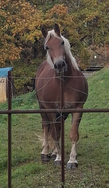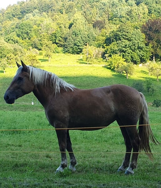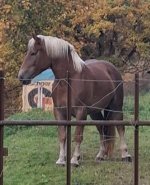 I am selling my 3.5-year-old Noriker mare Fiona for personal reasons. She was born in May 2022. She is in excellent health with an current height of 153 cm. She is friendly and easy to handle. She is familiar with tractors, dogs, and children. She is farrier- and loading-safe. Sire: Giovanni Diamant XVI Dam: Fabella Training level: - Age-appropriate education - Ridden for leisure - Driven from the ground - Normal barefoot, shod due to training - Dewormed - Eczema-free - PSSM-free