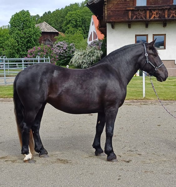 Gentle Noriker mare foal of Hamlet Schaunitz VXII, 3.5 years old, with a score of 7.58 and registered in the studbook. Currently pregnant by Steirer Vulkan, with a height of approximately 1.58 m. Very well-behaved and easy to handle, safe in the blacksmith and loading. Due to a reduction in stock, available to responsible owners. Price includes transportation.