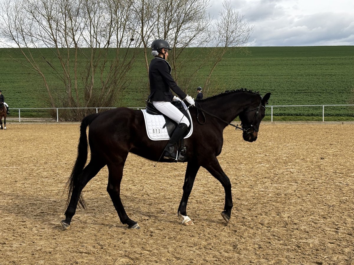 Boccaccio ist ein Wallach mit Ausdruck. Er ist freundlich, möchte gefordert und gefördert werden. Auf seinem ersten Turnier zeigte er sich völlig unerschrocken. Die verschiedenen Reize ließen ihn unbeeindruckt. Dies ist in beigefügtem Video zu sehen. Boccaccio möchte gefallen. Er lässt sich im Allgemeinen wunderbar ohne Kraft reiten und arbeitet stets gut mit. Jetzt ist er auf Anfang-L-Niveau ausgebildet, hat aber noch deutlich Potenzial nach oben. Mit mehr Turniererfahrung werden ihn seine wunderbaren Gänge zu einem Zuschauermagneten im Dressurviereck machen. Über den Winter hatte er eine Trainingspause. Seit Januar wird er konsequent wieder aufgebaut. Viel Gelassenheitstraining, Ausritte und klassische Dressurübungen haben ihn bereits zu einem verlässlichen Pferd werden lassen. Dennoch ist er kein Anfängerpferd. Er braucht sichere Reiter, die ihn beschäftigen können und selbst in neuen Situationen ruhig bleiben.