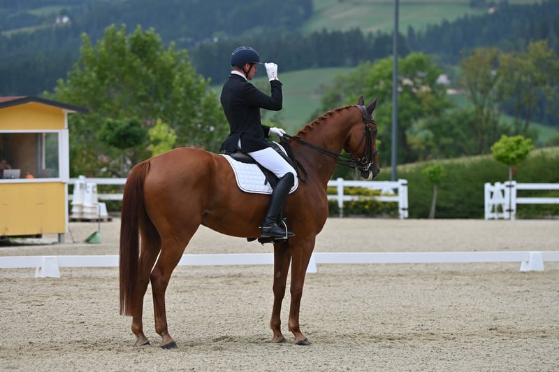 Nüsschen is a 10-year-old Oldenburg gelding with a wonderful, affectionate nature. He is well-behaved, people-oriented, and enjoys any form of attention. Plenty of movement and turnout, preferably in company, make him happy, and he is an absolutely reliable partner when hacking out. In dressage, he shows great talent, especially in lateral movements and canter pirouettes, which are among his strong points. This year, we successfully competed in the M class in Austria for the first time, achieving nearly 70%. He now reliably performs flying changes, and with a calm, patient rider, series changes are improving steadily. He remains honest and eager to please at all times. Nüsschen has always been healthy, is in top condition, and ready for new challenges. We wish for him a loving home where he can be supported and still be a horse – whether in sport or as a loyal leisure partner. He is being offered only due to lack of time and at a price below value, because we prioritize finding him a great new home over the price. We are looking for someone who appreciates him as much as we do and can offer him a long-term, warmhearted home. A video is available upon serious interest.