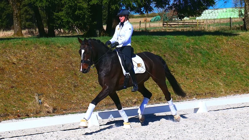 Friendly and consistently willing sports horse, successful up to Intermediaire II, particularly well-suited for the "Small Tour" up to Intermediaire I. Equally suitable for a young rider or an ambitious junior. A pleasure to handle. A current veterinary certificate is available. Due to personal private circumstances, he is offered at a very favorable price. For more information or to arrange a trial ride, please feel free to contact us anytime by phone at 0172-5330585.