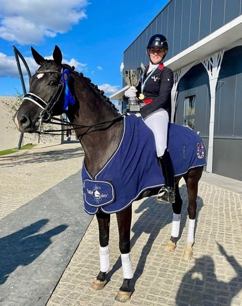 Toti ist ein super beeindruckender Beweger und ein harter Arbeiter. Er ist immer vorwärts, nicht für einen Amateur, aber definitiv ein echter Hingucker! Im Jahr 2022 war er der Gewinner der Balcan Meisterschaften mit dem Ergebnis von 68% in der Inter I und 70,3% in der Intermediate I FS. Er ist auf dem rechten Auge blind, aber er hat KEINE Angst vor Pferden oder sonst irgendetwas, das sieht man auch nicht an seinem Verhalten! Er ist das Kraftpaket, das in der Arena glänzt!
