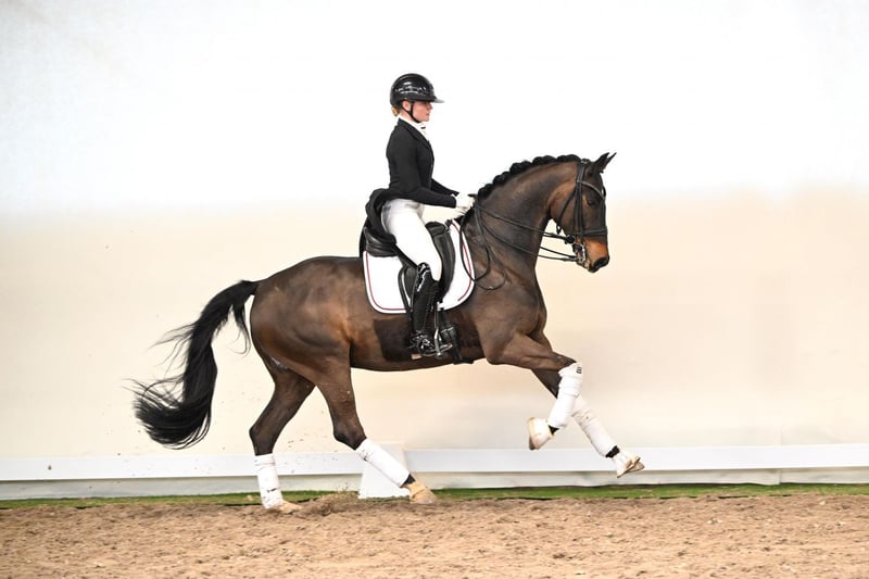 Salut combines proven genetics, experience, and exceptional rideability in one horse. This 12-year-old gelding offers all the qualities expected from a well-trained dressage horse at an advanced level. From a pedigree perspective, he unites three of the most influential sires in modern dressage breeding: Sir Donnerhall I, Rubinstein I, and Werther. For generations, this combination has stood for rideability, willingness to perform, and reliability—qualities that are clearly reflected in Salut. In competition, Salut demonstrates proven performance: successful up to advanced level (S***), he presents himself as a confident and composed partner with a secure command of all movements. A horse that consistently instills confidence in his rider while always thinking along. Particularly noteworthy is his rideability: naturally uphill, with excellent balance and a consistent, elastic contact, he offers an expressive yet harmonious picture under saddle. His work ethic, experience, and reliability make him an ideal partner for ambitious riders. A charming and experienced gelding who combines performance, rideability, and character at the highest level. A true schoolmaster with quality—ready to guide his next rider to success.