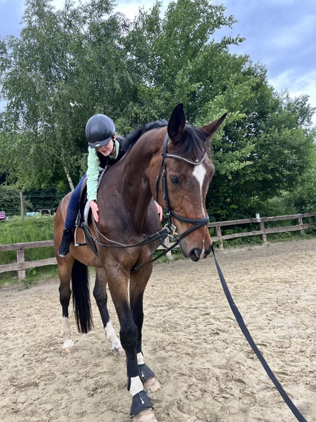 For sale is my impressive Oldenburg gelding, First Nacho. The dark bay gelding impresses with his generous height of 1.83 meters and his elegant appearance. He is ideally suited for leisure riding and convinces with his friendly nature as well as his versatile capabilities. The horse is healthy aside from his equine asthma, well-built, and reliable – perfect for riders who value quality and character. I purchased Nacho at the age of five, and he has become very dear to the whole family. Therefore, a sale to a dealer is not an option. At that time, Nacho was trained in M-level dressage, but I have mostly ridden him for recreational purposes, and he has always enjoyed varied work. If interested, I look forward to hearing from you!