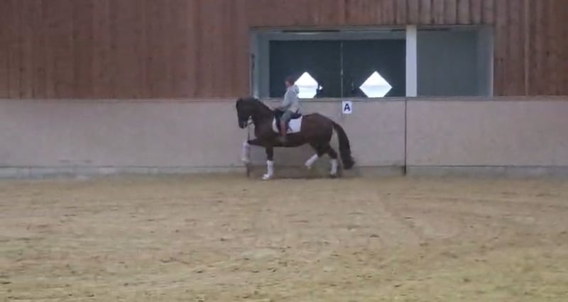 Tiziano to absolutny marzenie dla każdego ambitnego amatora. Jest przyjazny, łatwy w obsłudze i bardzo przyjemny w codziennym kontakcie. Podczas treningu jest zawsze uważny i zaangażowany, nie da się nim łatwo zniechęcić. Pod siodłem również imponuje swoją niezawodnością i jest nawet odpowiedni dla dzieci. Film dostępny tylko na życzenie osobiste. Dobrze radzi sobie także na wycieczkach terenowych. Swoje małe skoki pokonuje również pewnie i bez problemu. Zna wysokie lekcje: Pasage wykonuje pewnie, pierwsze próby piaffu są już widoczne. Lekcje galopu na poziomie zaawansowanym opanowuje z łatwością. Zdjęcia RTG dostępne na koniec 2024 roku. Posiada ubezpieczenie na życie, które można przejąć.