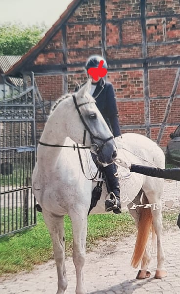 Nuestro Fasi (Fastoso) es simplemente muy adorable. No tiene problema con niños, perros o gatos. Sin embargo, no disfruta de la doma o del volteo, por lo que finalmente hemos decidido entregarlo. Le encanta salir a campo y es totalmente apto para ello. También le entusiasma el trabajo en el suelo. Buscamos para él personas que no tengan aspiraciones deportivas, que busquen un caballo fiable para el campo y que disfruten mucho del trabajo en el suelo. También podemos imaginarlo en terapias asistidas con caballos o en coaching. Además, preferiríamos una caballeriza en paddock con un área seca para descansar. En verano, también nos gustaría que pase todo el día en la pradera o al menos durante el día. Sería ideal que tenga contacto familiar, eso le encantaría. Hasta ahora, siempre ha estado en una manada de caballos castrados, pero no muestra ningún comportamiento indeseado incluso cuando las yeguas en la otra cerca le muestran sus intenciones. No hay problema para cargarlo en el remolque ni para el herrador. Además, debido a su experiencia en concursos de volteo, está acostumbrado a mucho movimiento y a estímulos visuales y sonoros, y no se deja impresionar fácilmente, aunque sigue siendo un caballo. Incluso sin compañía equina, para asistir a la boda de la dueña de la yegua, no hay problema (ver foto).