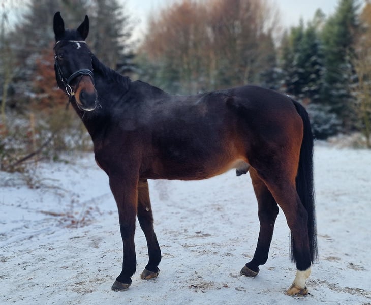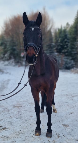 Freddy, der eigentlich Vorsterheides Freak Show heisst ist sehr kinderfreundlich. Wird er von kleinen Kindern geführt, passt er gerne sein Tempo an und passt auf seinen kleinen Führer gut auf. Zum reiten ist absolut toll. Er läuft von sich aus gut vorwärts und schreckt vor nichts zurück. Er geht alleine, wie auch in der Gruppe ins Gelände, egal ob vorne oder hinten. Sollte in der Gruppe mal was gefährlich sein, übernimmt er auch gerne die Führung und bringt alle sicher weiter. Er ist sehr sitzbequem und daher auch für die Dressurarbeit sehr angenehm. Längeres ruhiges galoppieren, fällt ihm eher schwer. Das kompensiert er über etwas mehr Tempo oder fällt in den Trab zurück. Dies ist auch der Grund, weshalb er leider nicht so super zu uns passt, weil wir als Voltigierstall auf eine ruhige und gleichmässige Galoppade angewiesen sind. Im Oktober aber trug er unsere Kleinsten Voltis noch souverän durch ein Schrtt/Trab Turnierli durch, was er mega zuverlässig und lieb macht. Mit seiner Grösse von ca. 1.72 (er wirkt irgendwie gar nicht so gross) trägt er aber gut eine ganze Familie oder sprich einfach erwachsene Personen durch Wälder.