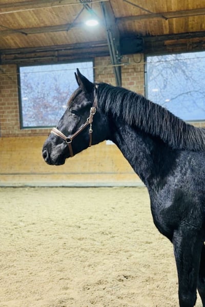 Totoro is a truly well-behaved and lovable young gelding with good conformation and movement. He was raised naturally in a herd and currently spends his days outside on the pasture, with nights in a box. He has a recent, excellent veterinary certificate, including assessment of the neck and back. He is still quite green but already knows how to lead, tie, and has been introduced to the farrier, showing very good manners. He is also very promising under saddle. This is a real uncut gem offered at an affordable price. For inquiries, please call 0173 2846173 or contact via WhatsApp.