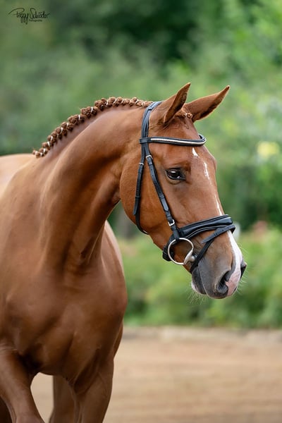 **Sales Advertisement: Oldenburg Gelding** For sale is a beautiful Oldenburg gelding, born in 2022. With his striking chestnut color and a height of 166 cm, he is not only an eye-catcher but also a promising talent for dressage. Skydancer is professionally started under saddle and comes directly from a dedicated breeding facility. This young gelding impresses with his quality of movement and friendly disposition. He is well-mannered, easy to handle, and is already showing initial progress in his training. Ideal for riders looking for a promising dressage horse and who enjoy working together. He is suitable for both amateur and ambitious riders and offers great potential for the future. If you are interested or have any further questions, please feel free to contact me. Viewings are possible by appointment. Don't miss this opportunity!