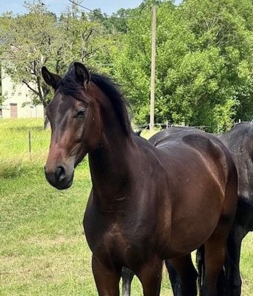 Hermoso caballo de 3 años, potro, de color marrón oscuro, hijo de Morricone x Quaterman.