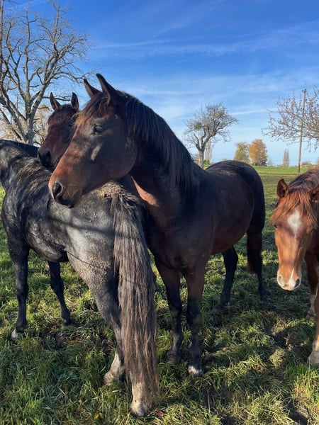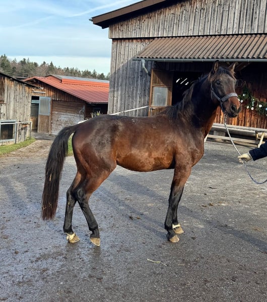 Dunkelbrauner Dressurwallach – 3 Jahre – Aus eigener Zucht Zum Verkauf steht ein beeindruckender, 3-jähriger Wallach in edlem Dunkelbraun aus eigener Zucht. Dieser junge, aufstrebende Sportpartner vereint moderne Dressurgenetik mit viel Ausstrahlung, Qualität und Zukunftspotenzial. Abstammend vom dressurstarken Morricone und Quaterman, überzeugt er mit einer exzellenten Veranlagung für den großen Dressursport. Seine Mutterlinie ist zudem geprägt von dem bedeutenden Vererber Rohdiamant, was diese Linie besonders interessant macht. Diese hochkarätige Blutführung garantiert eine erstklassige Dressurabstammung, die nicht nur Züchterherzen höherschlagen lässt, sondern auch ambitionierten Reitern die besten sportlichen Perspektiven eröffnet. Der Wallach besticht durch: • Harmonisches, modernes Exterieur • Korrektes Fundament und gute Hufe • Drei sehr gute Grundgangarten mit natürlicher Balance • Intelligentes, menschenbezogenes Wesen • Beste Voraussetzungen für die weitere Ausbildung in der Dressur • Interessant für Sport und Zucht dank wertvoller, selbst gezüchteter Genetik Als selbst gezogener Wallach wurde er von Beginn an sorgfältig aufgezogen und kennt den Umgang mit Menschen. Er ist zutraulich und unerschrocken. Ein Dressurtalent mit überzeugender Abstammung und klarer sportlicher Perspektive – ideal für alle, die einen jungen Wallach mit Qualität suchen, um ihn selbst auszubilden oder ein wertvolles Zuchtprojekt zu ergänzen.