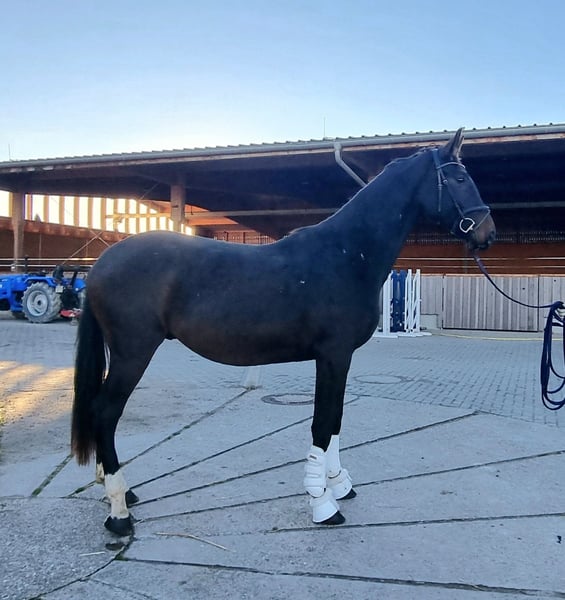 Dieser gut entwickelte dunkelbraune Wallach ist am 15.6.2023 geboren. Er bewegt sich sehr locker durch den Körper, hat ein stabiles und gutes Fundament. Er hat drei sehr gute Grundgangarten mit viel Elastizität und Raumgriff und Takt. Er ist sehr umgänglich und dem Alter entsprechend anlongiert. Er wächst bei uns im Aktivstall in einer 20 Pferde Wallach / Hengstherde auf von Jährling bis Rentner und ist somit bestens sozialisiert. Sein Endmaß denken wir wird geschätzt ca 170cm sein. Wegen Bestandsverkleinerung in gute fördernde Hände aus Züchterhand zu verkaufen. Kann auch gerne zur weiteren Aufzucht bei uns bleiben. Auch ein Anreiten ist bei uns möglich. Auf Wunsch könnte er auch kastriert werden. Gute Röntgenbilder vorhanden von 12/2025