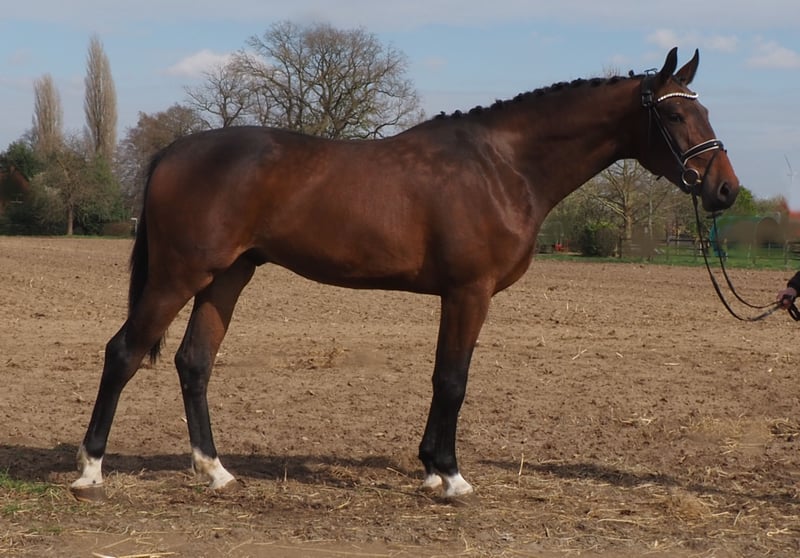 Large-framed young horse with exceptional movement quality and tremendous jumping ability! Sired by Cafe au Lait and with Quattro B on the dam side (MMV), this colt is doubly proven for both dressage and show jumping disciplines. Strongly influenced by his grandsire Conthargos, this impressive gelding shows incredible potential over fences! Definitely a candidate for the Grand Prix level! Born early in the season, he is already very well developed and was officially entered as a 3-year-old in January. He has been well longed and now enjoys a few months of pasture rest before starting under saddle. His sire, Cafe au Lait, was a champion stallion at his licensing, HLP winner, and finalist at the Bundeschampionate. He was successful in advanced classes himself and has gained a reputation in recent years as an outstanding sire with top-quality offspring. For example, Cafe's Casimir (Cafe au Lait x Calido x Grannus), a highly acclaimed auction topper at the Oldenburg Elite Auction, is already a multiple winner in S-level dressage and has achieved international success in Intermediaire I. Kasselmann’s mare, Cafe’s Caletta (Cafe au Lait x Calato), is also placed in S-level dressage and has won at international Grand Prix level. Cafe’s Matts (Cafe au Lait x Don Frederico) was the second-highest priced dressage horse at the Oldenburg Summer Mixed Sales. Additional young horses from spring-focused dam lines have been repeatedly placed in dressage classes from A to M and are notable for their strong movement and sharp minds. There is no doubt that Cafe au Lait offspring excel in show jumping up to the advanced level, as demonstrated by our own breeding program: - Cafe’s Champus: licensed, vice-world champion of young horses - Cafe Junior: licensed, successful internationally in Saudi Arabia - Cafe’s Columbo: licensed and successful in sport in France - Cafe’s Don Rubin: licensed, bronze medalist at the Dobrocker Deister Championship at just 4 years old, now 5 and multiple winner in L-level show jumping, placed in M, and qualified for the Bundeschampionate. He has also achieved wins in children’s E-Springen despite wearing a blanket! - Cafe’s Deconi: licensed, just 3 years old, completed a 50-day performance test with scores up to 9.0! Stationed with Paul Schockemöhle, Cafe au Lait has already produced numerous internationally successful show jumpers, including "Royce," winner of the FEI CSI5* $500,000 Rolex Grand Prix Wellington. Cafe au Lait himself was a Bundeschampionate finalist under Philipp Weishaupt and has competed successfully up to S*** jumping level. He is also well-trained in dressage, with three excellent GGA scores and training at S level. Our foals receive daily mineral feed and foal starter, regular EQUISTRO Haemolytan and Ipaligo Foal, worming treatments, and farrier care are all standard. The mares are fed special broodmare feed, daily forage, linseed oil, and unlimited hay throughout pregnancy to ensure optimal health. Further foals and young horses from our own breeding are available upon request. A small selection can be found among our other listings. Trade-in of suitable broodmares is possible. Video requests and inquiries are only accepted via WhatsApp in advance. A high-quality X-ray certificate is available.