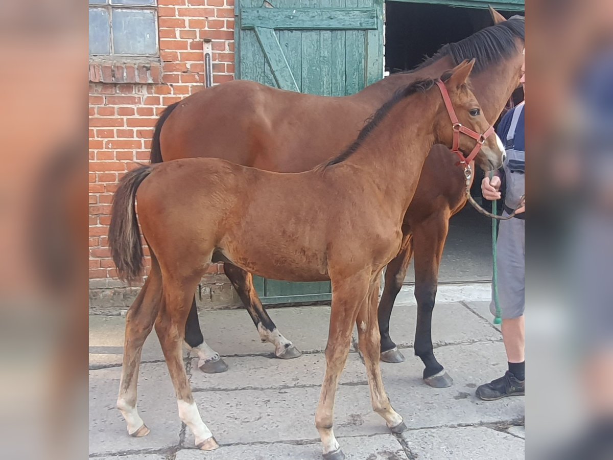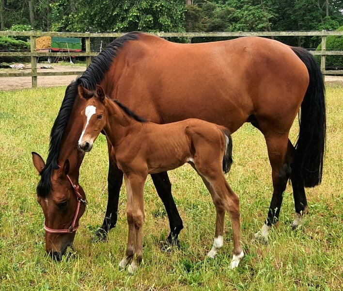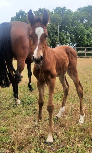 Typical, chic and long-legged colt, which has everything for show jumping. Correct on the legs, good joints, 3 very good basic gaits, curious and powerful. He didn't just inherit his father's looks. Well behaved, knows lead rope and farrier. Jumping is in his blood. Sire "Lordanos" is a guarantor for maximum performance inheritance! This strain has been the most successful in the world for several years. The dam's sire "Landor S" is another very great show jumper sire in the pedigree. Dam's sire "Saint Cyr/T." refreshes the pedigree. His offspring are very versatile and successful in riding horse, dressage, jumping and aptitude tests. This comes from his father "Kostolany". His offspring are characterized by an excellent interior, high rideability and a pronounced double talent for jumping and dressage. "Kostolany" is the father of "Gribaldi" and thus grandfather of "Totilas".