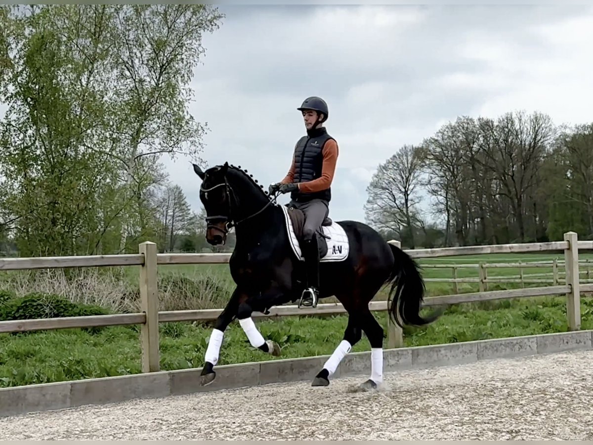 Bumbledee has enchanted us from the very beginning with his elegant presence. The gelding is still in full development and was lightly backed in September. He impresses with a wonderful character, which he definitely inherited from his dam. He can be mounted directly without lunging, even after a day off. The dark bay gelding captivates with his elegant appearance and pleasant temperament. He demonstrates great talent and a willingness to learn for dressage. Currently, "Bumbi" is still somewhat overbuilt and is barefoot.
