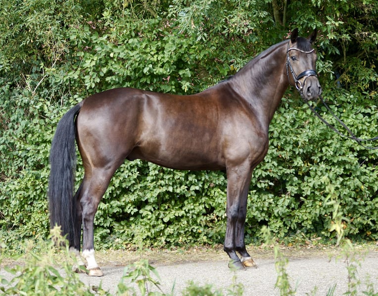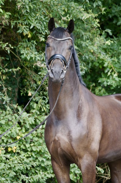 Zum Verkauf steht ein äußerst sympathischer und talentierter Wallach, der sowohl durch sein äußeres Erscheinungsbild als auch durch sein Reitgefühl überzeugt und eine vielversprechende Perspektive für den weiteren sportlichen Weg bietet. Dieser junge Wallach stammt ab vom bewährten Vererber Secret aus einer Mutter von His Highness x Rohdiamant aus dem bekannten Elfenstamm. Eine Abstammung, die auf Dressurveranlagung schließen lässt. Bereits jetzt überzeugt er mit drei guten Grundgangarten, wobei besonders der kraftvolle Galopp hervorsticht. In der Dressur ist er bereits A-platziert und bringt das Potenzial für höhere Aufgaben mit. Im täglichen Training zeigt er sich motiviert, lernfreudig und überzeugt durch seine Rittigkeit sowie seine schnelle Auffassungsgabe. Auch im Umgang ist er unproblematisch: Schmied und Verladen kennt er, erste Sprünge wurden problemlos absolviert und auch im Gelände präsentiert er sich sicher und gelassen. Mit einem Stockmaß von 1,65 m ist er angenehm in der Handhabung, deckt gut ab und ist auch optisch ein echter Blickfang. Video auf Anfrage. (0152-24942724)