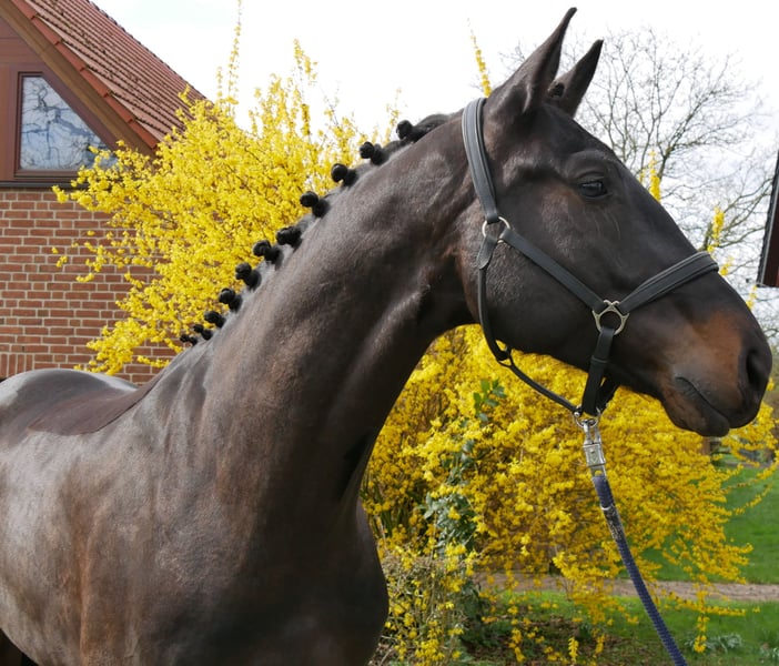Name: Theo Alter: geb. 01.05.2022 Geschlecht: Wallach Stockmaß: 167 cm Rasse: Oldenburger Abstammung: Total McLaren von Totilas x Rubin Cortes von Rubin Royal Ausbildungsstand: angeritten Bildschöner Wallach mit guten GGA sucht neues Zuhause! Brav im Umgang, verträglich mit anderen Pferden. Zur Zeit barhufer, geimpft und frisch entwurmt. Bei Interesse melden Sie sich unter der Nummer 0176 62495567