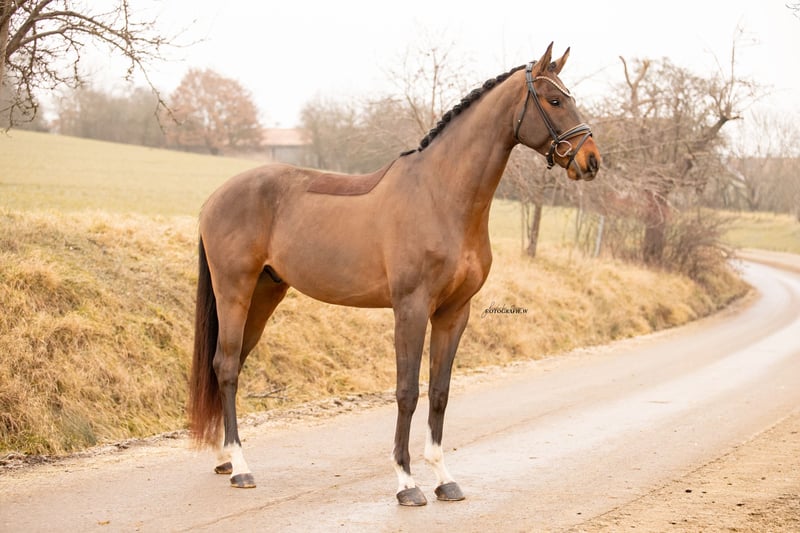 Sansibar ist ein nun 4-jähriger Wallach von San Amour! Er besticht durch seinen tollen Typ mit herrlicher Aufmachung und seinen sehr guten GGA mit viel Grundschwung, Dynamik und Gleichmaß! Sansi ist bereits bei seinem ersten Turnierstart 4. in einer Reitpferdeprüfung geworden. Auch am Turnier zeigte er sich ruhig, abgeklärt und sehr unkompliziert! Er lässt sich brav verladen, ist unkompliziert beim Schmied, wurde regelmäßig geimpft & entwurmt! Gute Röntgenbilder inkl. Hals & Rücken sind vorhanden! Anfragen gerne per Telefon/WhatsApp: 0170/2779570