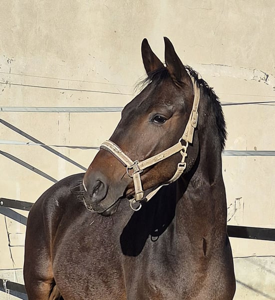For sale is Bonegro, a beautiful Oldenburg gelding born in 2021. With his elegant dark brown coat and a height of 16.1 hh, he is a real eye-catcher. This talented gelding shows great potential in dressage and is ready to be further developed. He impresses not only with his relaxed basic gaits but is also very well-behaved, easy to ride, and has a high willingness to learn. He has already placed in dressage horse tests at the A level after a short time and is uncomplicated at competitions. He is suitable for both leisure and competition riding. From the direct maternal line, numerous horses have been successful in dressage at the M and S levels with amateur riders. If you are interested or need further information, please feel free to contact me. Video available via WhatsApp. Don't miss this opportunity to find a promising and reliable partner for the future!