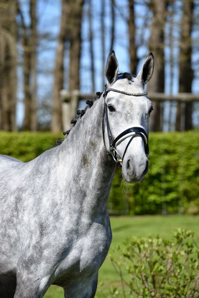 💫Check de Grijze 💫 ❤️SILVER HIT BH❤️ ☘️2022 Oldenburger Gelding, afstammend van Sandro Hit – Labradoras – Edelveis ✴️Een bijzonder opvallende schimmel, die uitblinkt door nervescherpte en rust, altijd geconcentreerd meewerkt en natuurlijk ook met uitstekende manieren omgaat. ✴️Silver Hit beschikt over een zeer goede stap, mooie draf en een geweldige galop. Hij heeft de tijd gekregen om te groeien en komt rechtstreeks van de fokker, die in Litouwen onder optimale omstandigheden hoogwaardig Oldenburger sportpaarden fokt. ✴️Vader Sandro Hit wordt beschouwd als een absolute stempelhengst, die met talloze top-sporters, ongeveer 200 gekeurde zonen, vele Bundeschampions en meer dan 100 Grand Prix paarden een wereldwijd verspreide lijn heeft opgebouwd. ✴️De moeder van Silver Hit, Virgin MG, is de volle zus van de gekeurde hengst Libras III MG. Grootmoeder Valia II MG is de zus van de gekeurde hengst Chanas v. Chemborg. De derde moeder, Valgme, is de zus van twee gekeurde hengsten en van Veldre, moeder van de Grand Prix-winnende, EK- en WK-deelnemer Vivat (Artax Condor RBB) v. Vdumcivij/Elena Sidneva, RUS. ✴️Er is een digitale röntgentest beschikbaar. 🏡Locatie: 49377 Vechta ❤️SILVER HIT ❤️