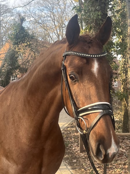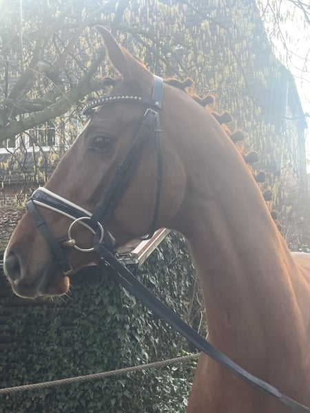 Vive le Rouge, ein sehr schöne zu reitender 4j. Wallach von Von und Zu x Quantensprung mit 3 sehr guten GGA. Fein zu reiten, lässt er sich dabei gut sitzen. Sein Charakter ist sehr zugewandt und auch mit anderen Pferden versteht er sich gut. Er ist bei uns mit viel Bewegung im Herdenverband aufgewachsen . Seine Mutter ist eine Halbschwester zum Grand Prix siegreichen Trakehner Siegerhengst Le Rouge. Seine Großmutter war Jahressiegerstute bei den Trakehnern. Züchter-Tüv liegt vor. Für weitere Fragen stehe ich gerne zur Verfügung.